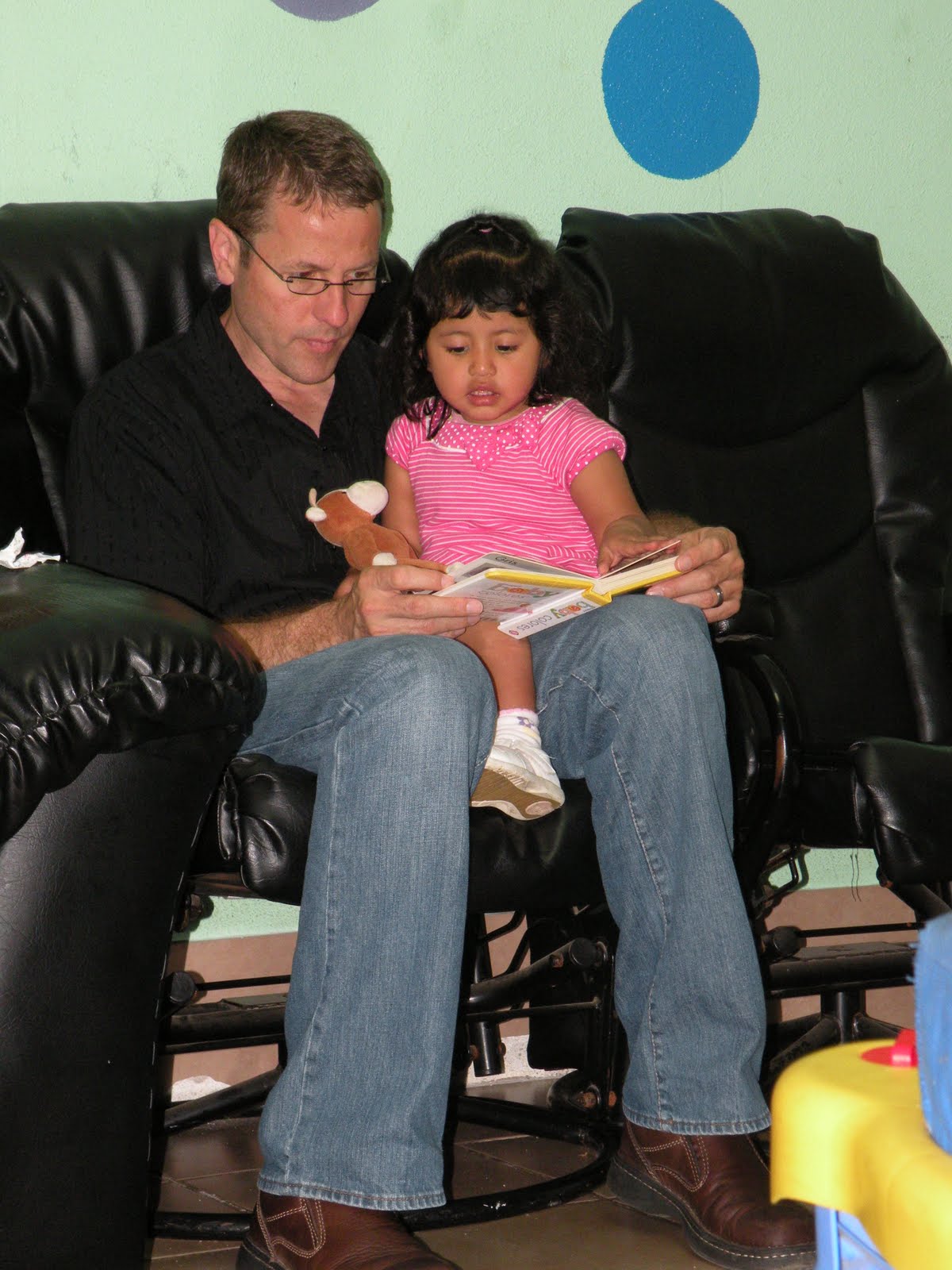This picture is of me reading to Anggie, a precious little girl who lives at Casa Shalom orphanage in San Lucas, Guatemala. The picture was taken earlier this month by my daughter, Jessica, who works at the home. Although the picture looks like just a simple session of fun book reading, it represents so much more.